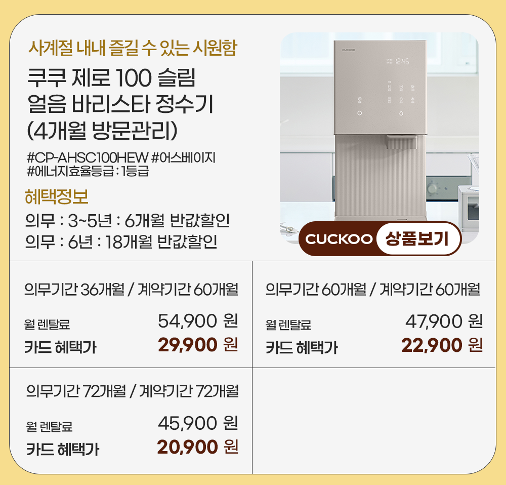 홈페이지 상담 및 렌탈 구매 필수 이름, 휴대폰번호, 주소 (우편번호, 상세주소) 렌탈 신청에 따른 고객 상담 및 렌탈구매 3개월